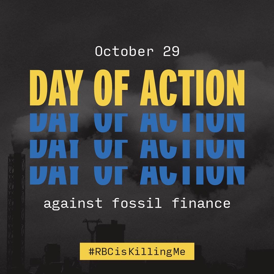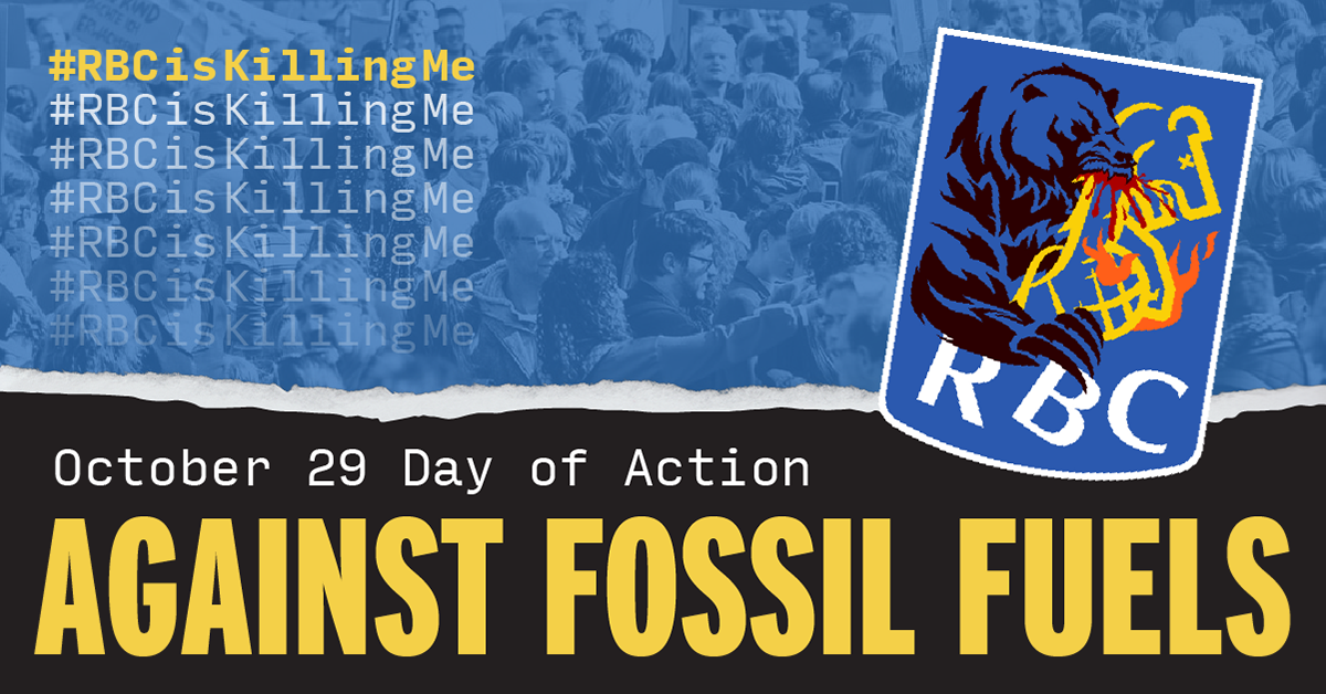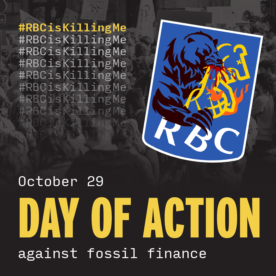 In Canada that means Canada’s biggest fossil bank, RBC, needs to feel the pressure from coast to coast to coast.