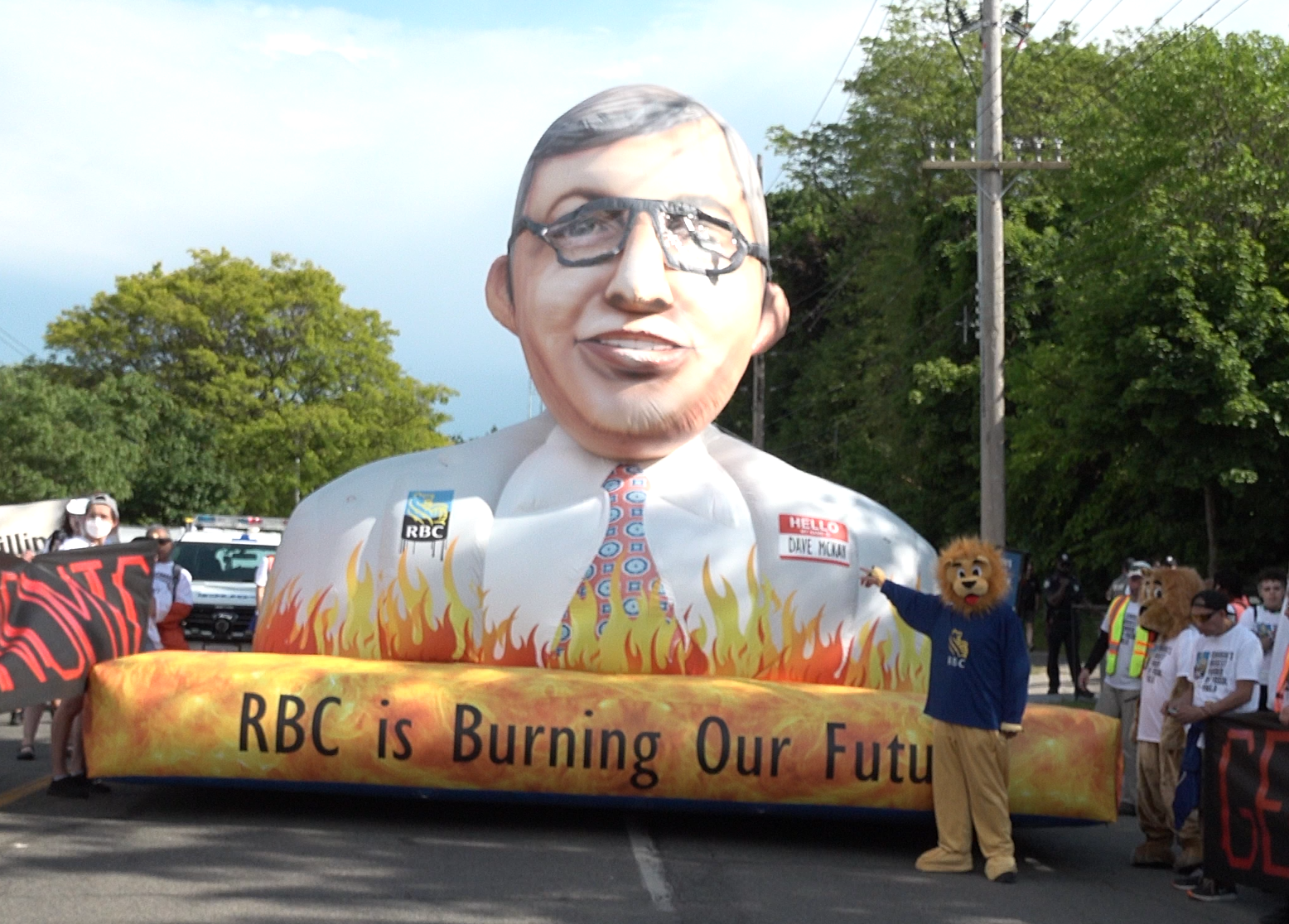 “Publicly, RBC talks a big game about climate action and Indigenous reconciliation. In reality,  just this month, they’ve proudly bankrolled new financing for fossil fuel projects, making climate chaos like fires, floods, and deadly heat worse,” said Sarah Beuhler, Stand.earth Climate Finance Campaigner. “RBC CEO Dave McKay can’t ignore a 15 foot inflatable of himself, and he certainly can’t ignore the billions his bank finances in climate destruction and Indigenous rights-violating projects.”